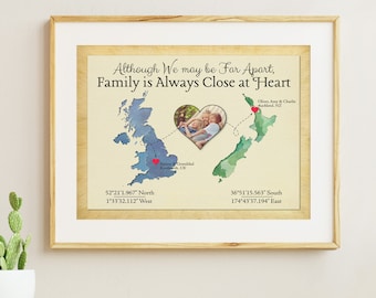 Long Distance Gift for Family, 2 Country Map Art With Photo Custom