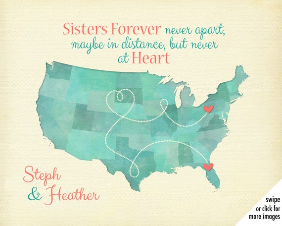 Long Distance Sister Gift Sisters US Map Art Sisters Forever