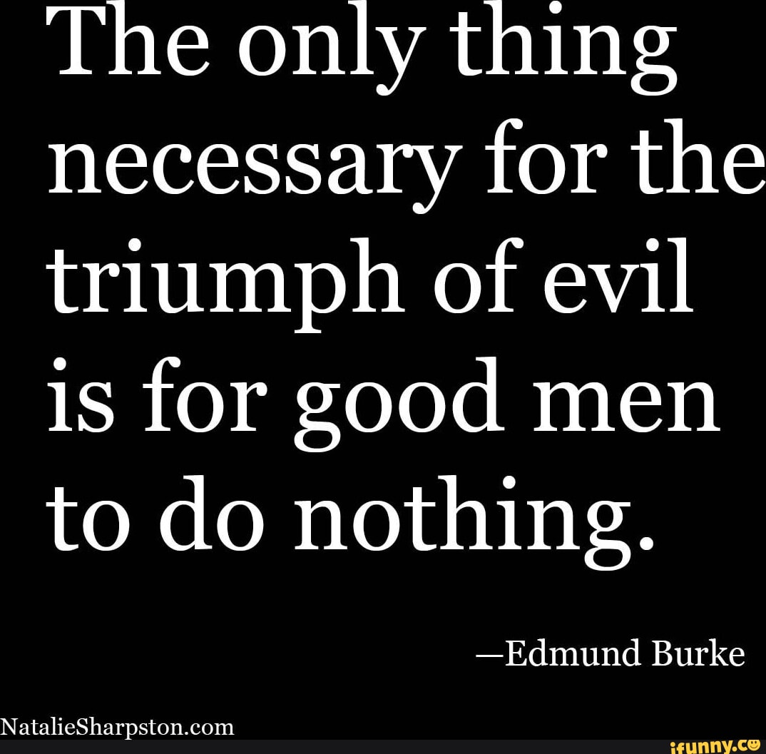 Quote The Only Thing Necessary For The Triumph Of Evil Edmund Burke Quote the Only Thing Necessary for the Triumph of : It reminds me of Edmund Burke’s quote: “The only thing necessary for the triumph of evil is for good men to do nothing.” Raul Labrador, maybe you can order a spine on Amazon Prime. . IT was the 18th Century Conservative philosopher and thinker Edmund Burke who is attributed as saying: “The only thing necessary for the triumph of evil is for good men to do nothing.” .