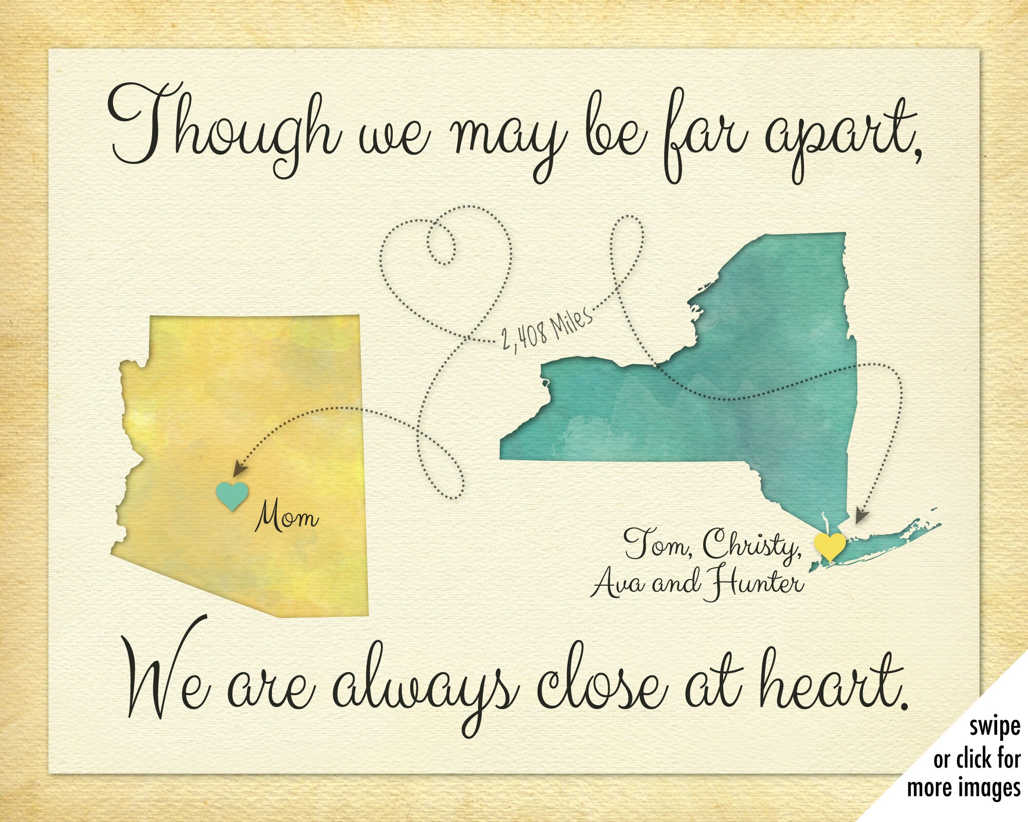 Though We May Be Far Apart We Are Always Close at Heart Etsy New